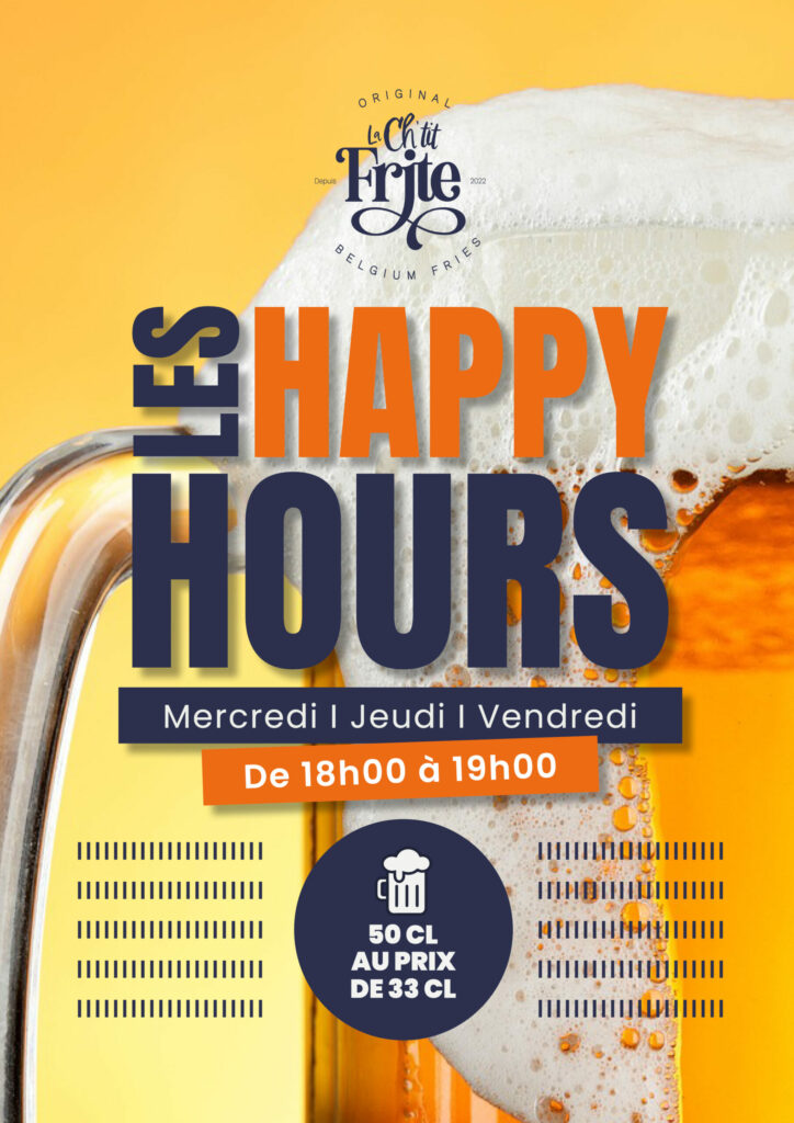 Infos Horaires - La Ch’tit Frite : pour boire un verre ou un café, suivez les horaires d’ouverture. Pour manger, respectez les horaires de la cuisine. Et ne manquez pas les Happy Hours du mercredi au vendredi de 17H00 à 19H00 (50 cl au prix de 33 cl) !